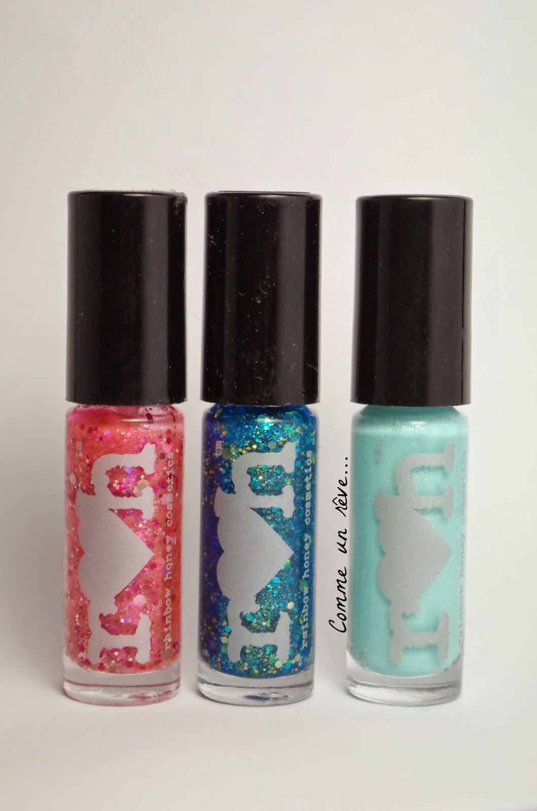 Et ce sont trois vernis Rainbow Honey que Charlotte m'a fourni afin de te les montrer ici.