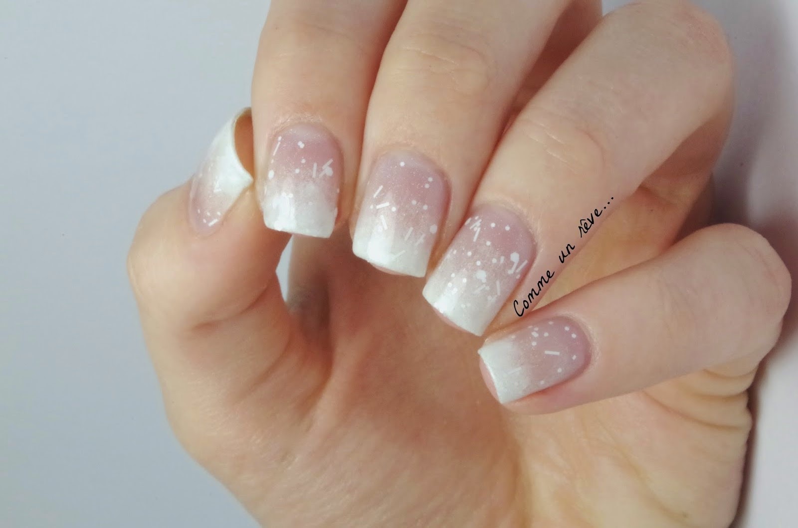 Je suis partie d'un gradient au blanc avec le vernis blanc Kiko (qui est enfait un liner).